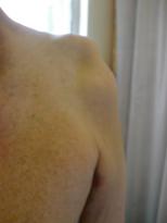 These first two pictures clearly show a shoulder and arm joint subluxed. Subluxation of the shoulder occurs when the joint partially dislocates due to the ligaments stretching. This can cause problems such as pain, oedema (excess fluid in the arm) and bad posture which in turn can cause other problems.